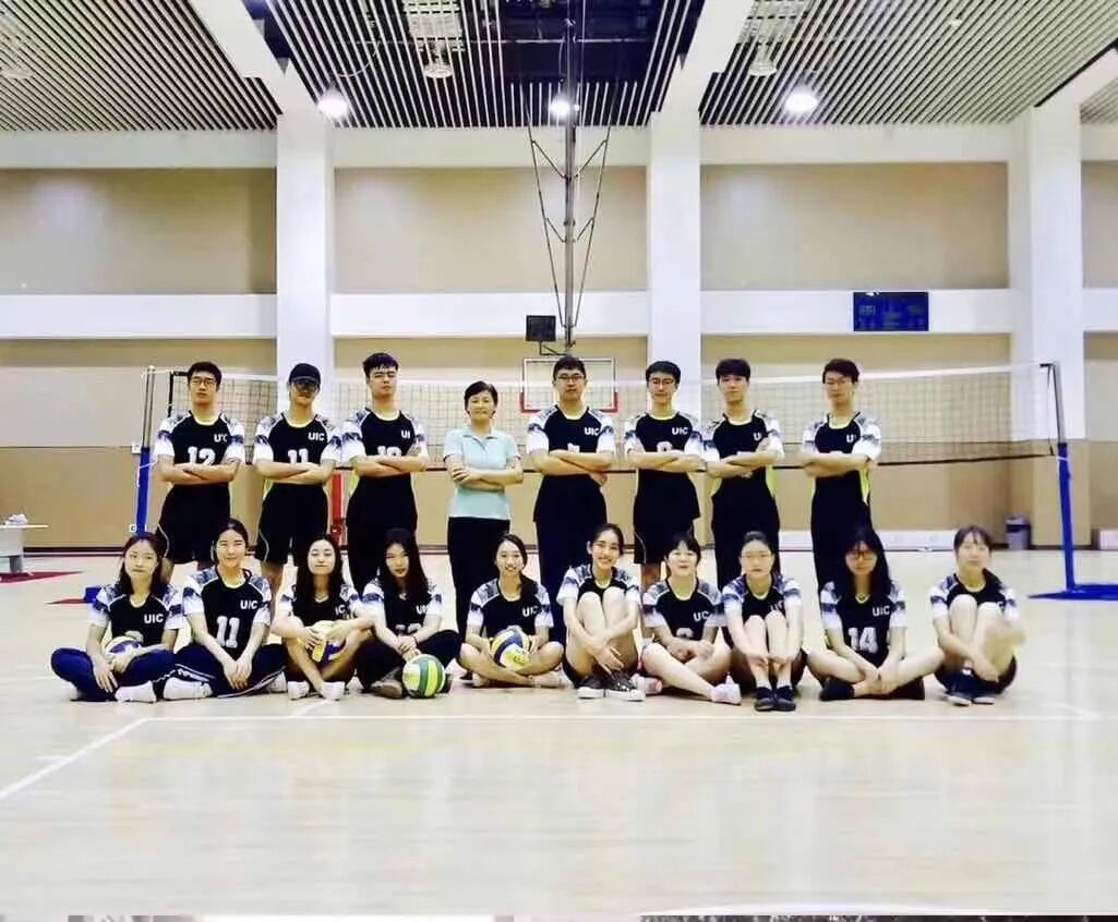周子韬(一排右五)和排球队成员、老师合影
