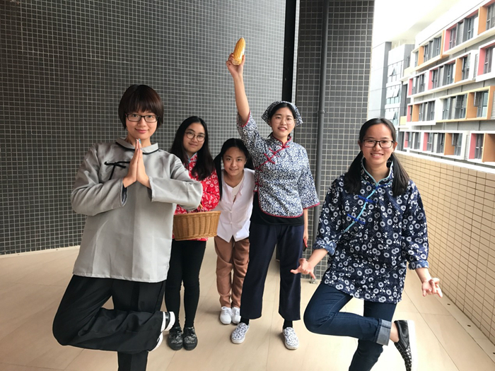 张紫昕(左一)和大一国文课小组成员合影